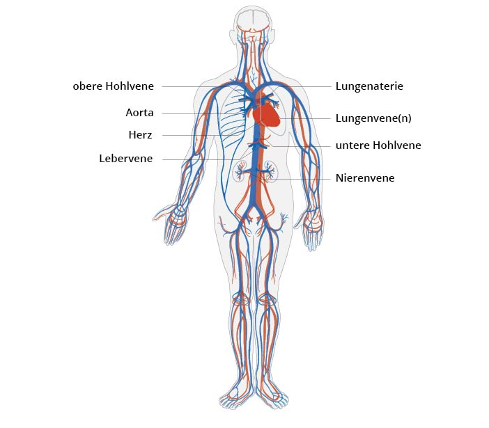 Im Zentrum des Herz-Kreislauf-Systems steht das Herz. Der Hohlmuskel pumpt Blut durch die Blutgefäße in den gesamten Organismus, um Organe und Gewebe mit Sauerstoff und Nährstoffen zu versorgen, aber auch um Abfallstoffe wie Kohlendioxid und Schadstoffe aus dem Körper abzutransportieren. Das gesamte Blut durchfließt innerhalb von 60 Sekunden einmal den Organismus. Der Blutkreislauf wird in den Lungenkreislauf und in den Körperkreislauf unterteilt. Die beiden Kreisläufe sind hintereinandergeschaltet.