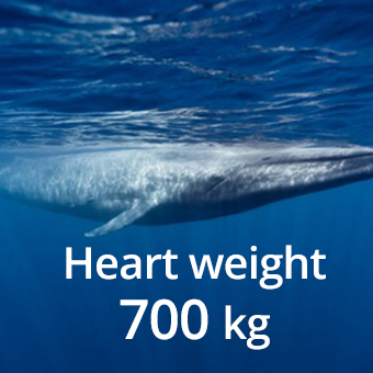 The heaviest heart belongs to the blue whale. It weights more than 700 kg.